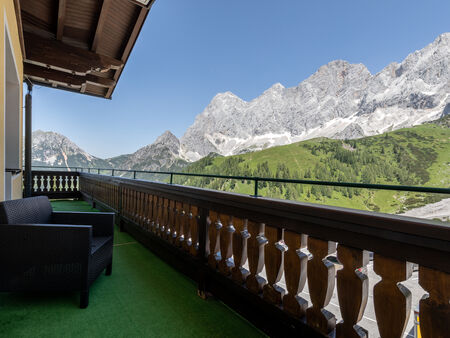 Nichtraucherzimmer - Doppelzimmer mit Balkon und Dachsteinblick. Buchbar ausschließlich für 2 Personen! Die Zustellung eines Babybettes ist möglich.